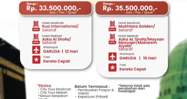 Paket lengkap, harga jelas, layanan amanah, dan bonus kereta cepat yang bikin perjalanan pian makin nyaman.