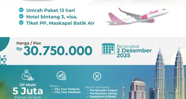 ✈️ UMRAH 2 DESEMBER 2025 — MASKAPAI BATIK AIR + CITY TOUR KUALA LUMPUR!