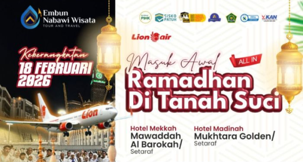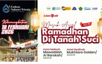 Ingin merasakan suasana Ramadhan pertama langsung dari Mekkah dan Madinah? Embun Nabawi Wisata menghadirkan program Umrah Awal Ramadhan 2026 dengan fasilitas lengkap, harga terjangkau, serta bimbingan ibadah penuh selama perjalanan.