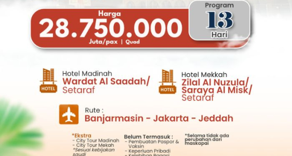 Cocok untuk jamaah pian yang handak ibadah nyaman tapi tetap irit biaya.